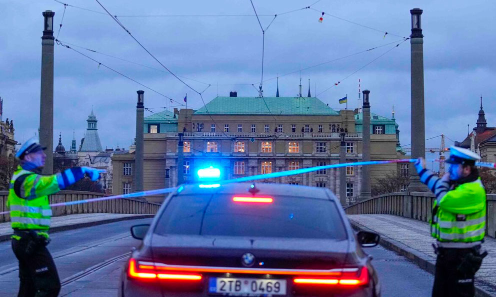 Unas escalofriantes imágenes difundidas en redes sociales muestran a David Kozak, el autor de la matanza que ha cobrado la vida de 15 personas y ha dejado 25 heridos, disparando desde el balcón de la Universidad Carolina de Praga.