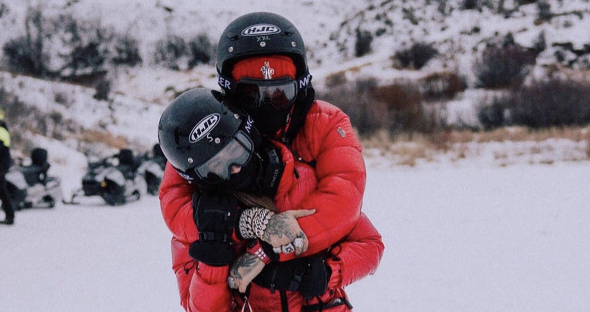 Posteriormente, se mostró en medio de la nieve abrazando a su novia, quien lucía con un atuendo muy similar al de él.