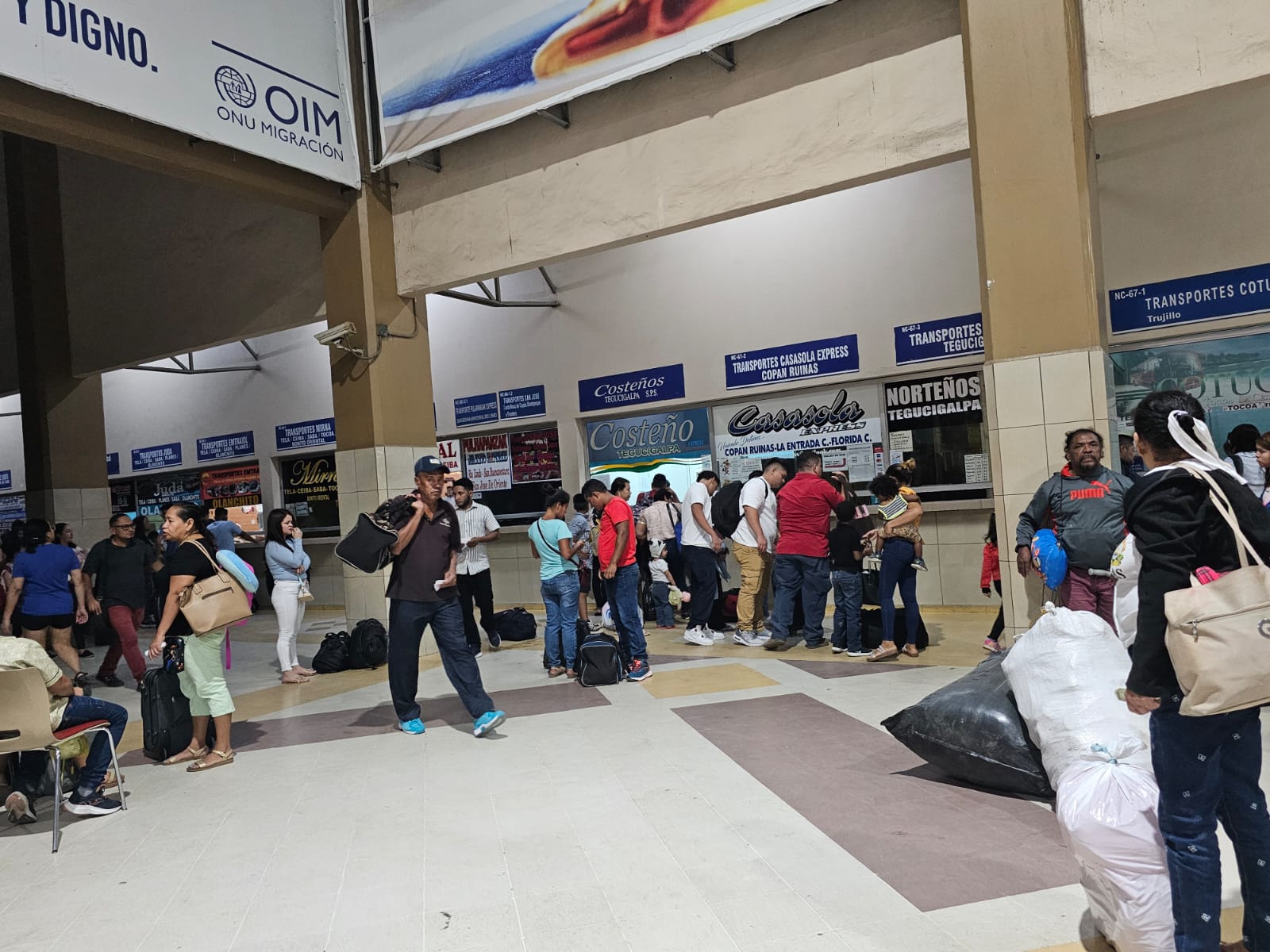 Viajeros abarrotan la Gran Central Metropolitana de San Pedro Sula, para desplazarse a sus lugares de origen previo a las festividades de fin de año.