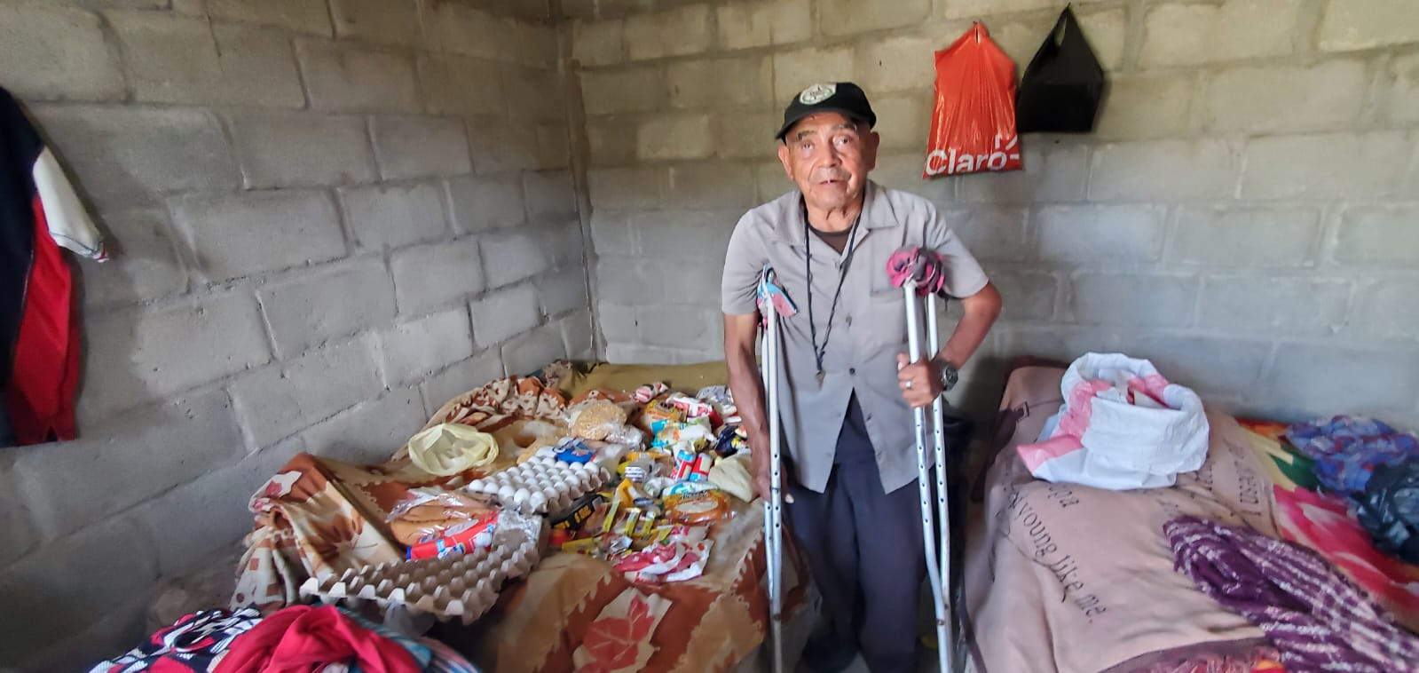Don Rosendo y doña Eduviges, fueron los bendecidos por HCH, con una provisión que incluye granos básicos, huevos, jabón, productos para el aseo personal y más.