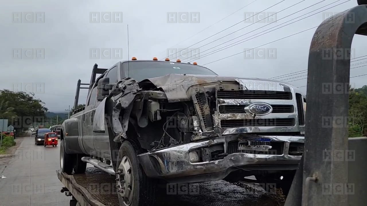 Un vehículo tipo pick-up chocó contra una rastra que estaba estacionada a la orilla de la carretera.