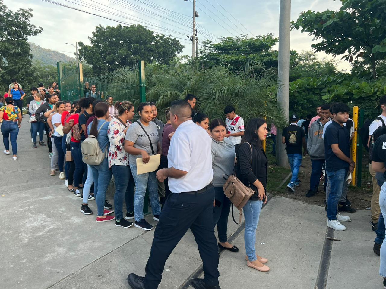 Miles de hondureños hacen largas filas en busca de una oportunidad laboral en las maquilas de Choloma.
