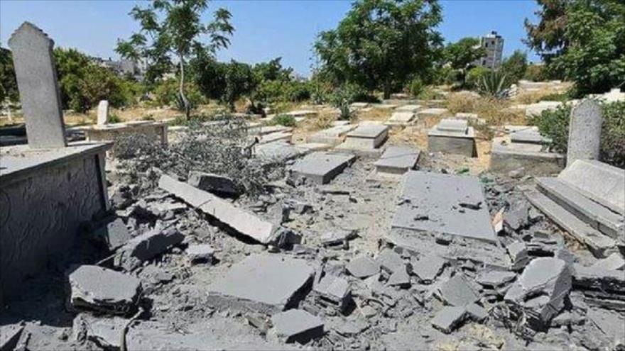 En imágenes grabadas en el cementerio del barrio de Al Tuffah, se veía a cuerpos desenterrados en su bolsa mortuoria en medio de montículos de tierra y otros cadáveres en sus sepulturas destrozadas, en medio de un parterre en que había el rastro del paso de una excavadora. . Una decena de hombres, equipados con guantes y mascarillas, se dedicaba a enterrar los cuerpos mientras un enjambre de moscas pululaba a su alrededor.