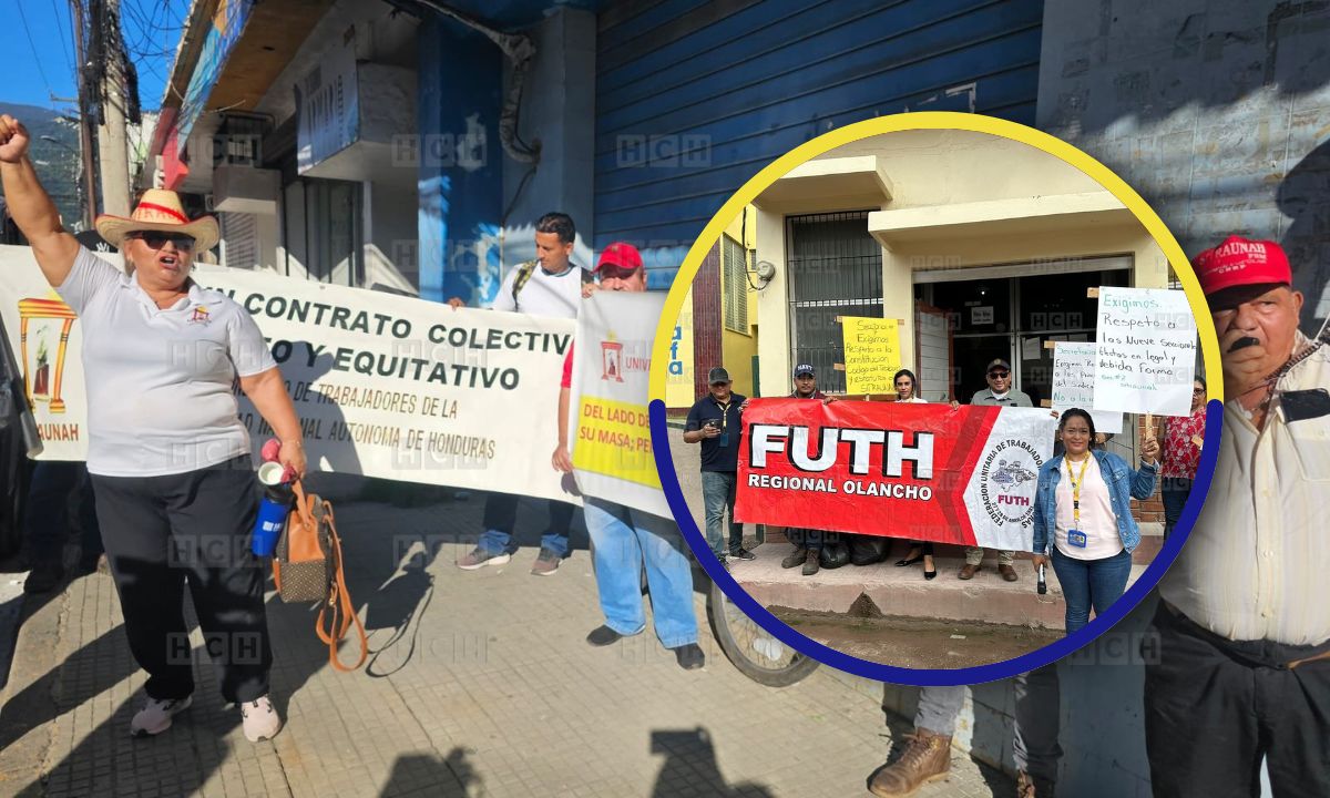 El sindicato de trabajadores de la de la Universidad Nacional Autónoma de Honduras protesta contra la junta directiva central.
