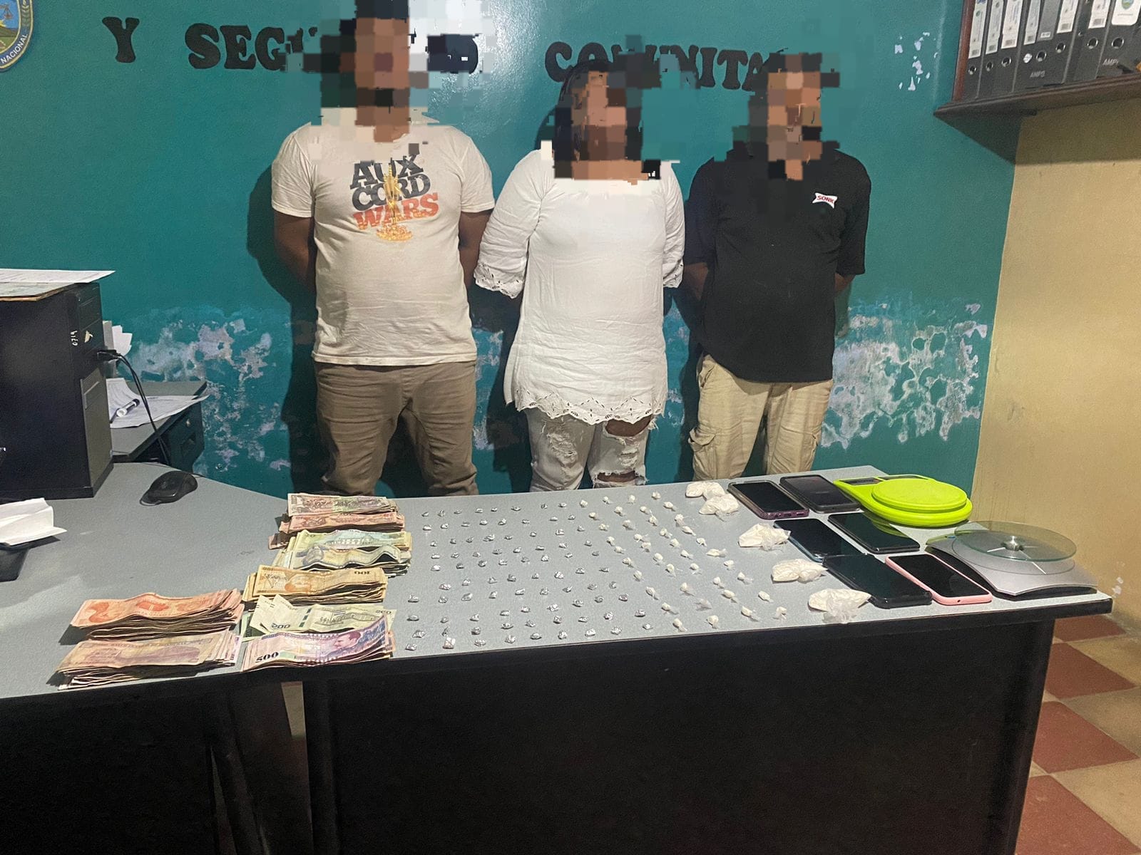 Entre los aprehendido están una fémina de 39 años, un jornalero de 37 años y un menor infractor de 17 años, originarios y residentes en el mismo lugar donde fueron arrestados.