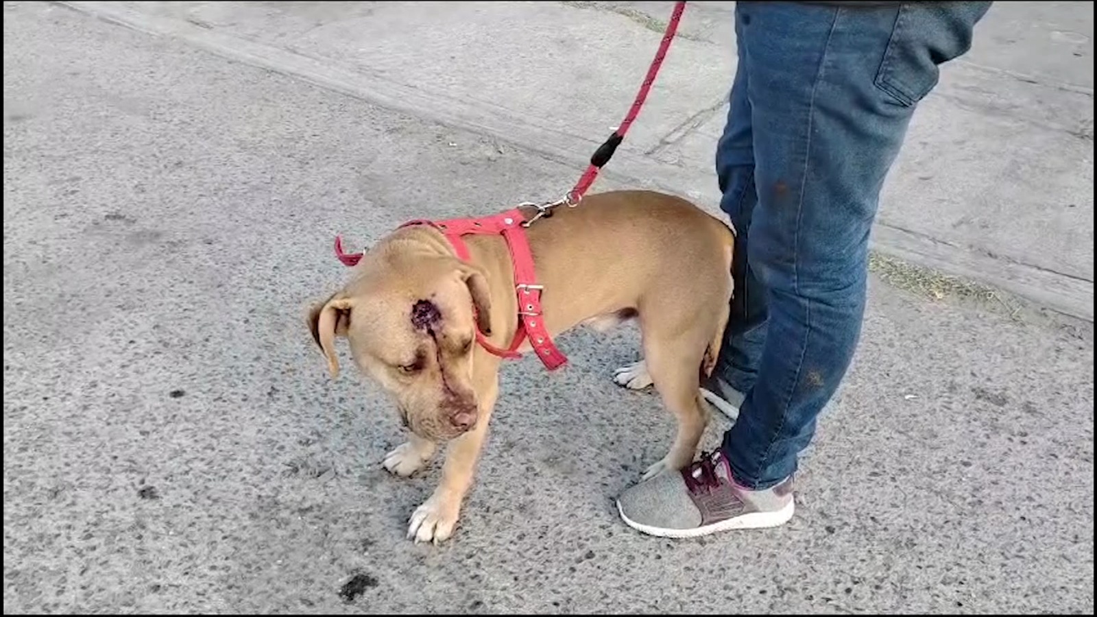 Sansón es un perro migrante de la raza pitbull de un año y tres meses que desde hace cuatro meses salió de Venezuela junto a su dueño, Aldo Salas de 28 años y su esposa María, quienes desde un principio no quisieron dejarlo, por lo que los acompaña desde que salieron de su país.