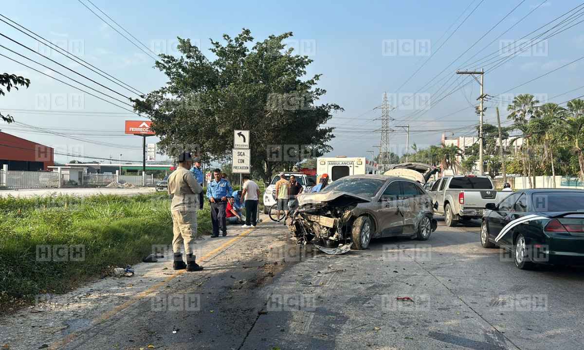 Un accidente en el bulevar del Norte de la ciudad de San Pedro Sula, Cortés, deja como resultado dos personas gravemente heridas y daños materiales.
