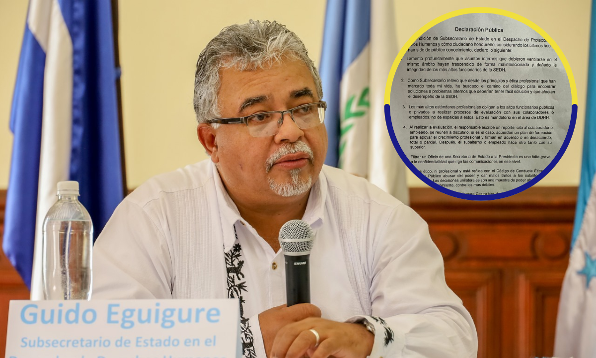 A través de una declaración pública, Guido Eguigure, informó que presentó su renuncia como subsecretario de Derechos Humanos a la presidenta Xiomara Castro.