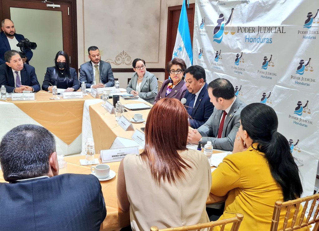 El pleno de magistrados de la Corte Suprema de Justicia (CSJ) sostuvo este miércoles una reunión con los diputados que componen el Frente Parlamentario de Apoyo a la CICIH.