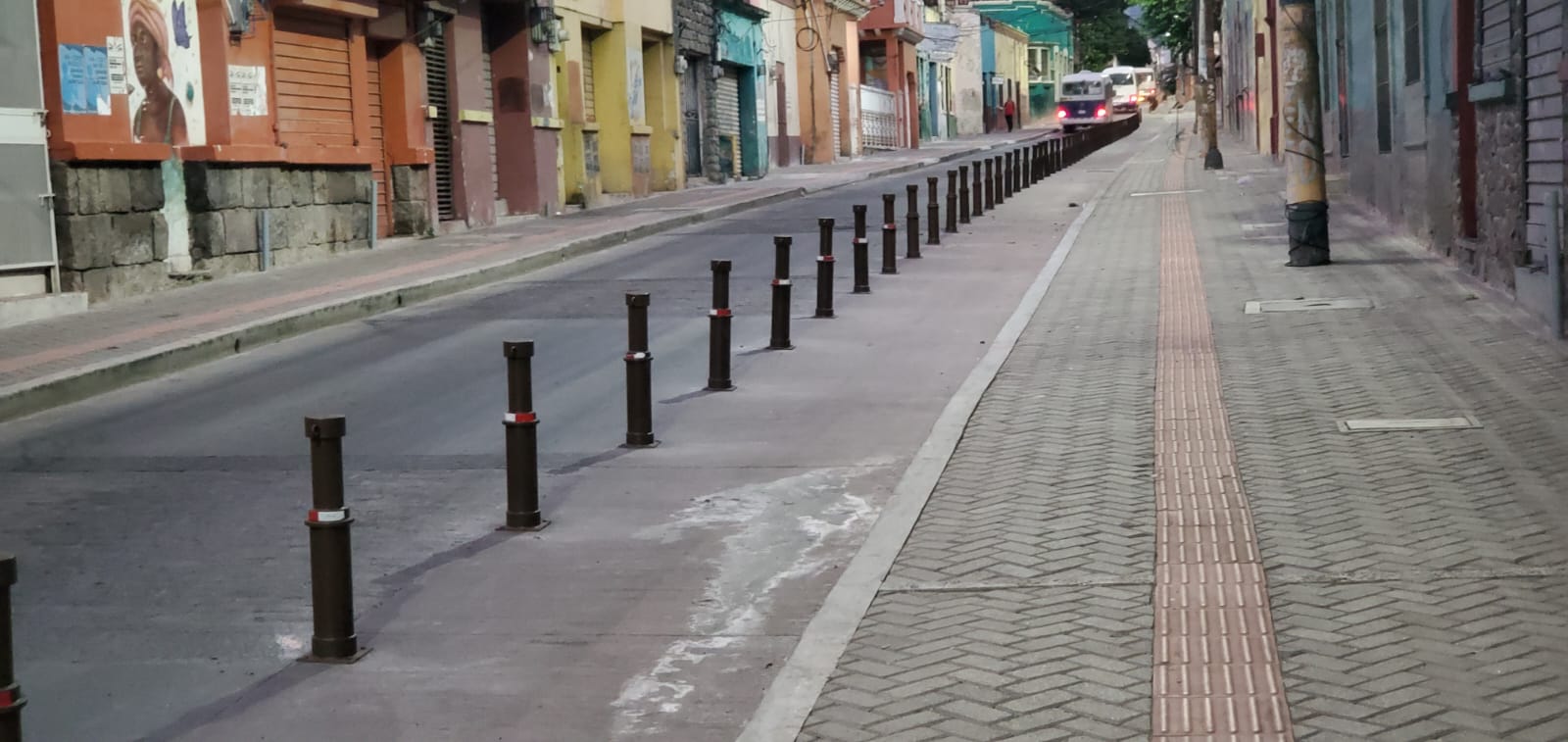 La Alcaldía Municipal del Distrito Central (AMDC) instaló tubos en medio de la calle de la Avenida Cervantes en el Centro de Tegucigalpa, para controlar la circulación vehicular en la zona.