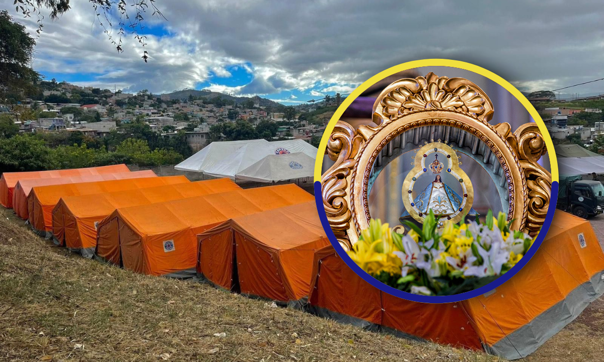 Instalan 20 carpas en las afueras de la Basílica de Suyapa para albergar a más de mil personas en el marco de los 277 años del hallazgo de la virgen de Suyapa.