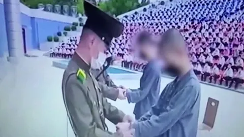 Las imágenes de este juicio público fueron grabadas en Corea del Norte durante la pandemia, según se deduce porque todos los asistentes llevan mascarilla. Los jóvenes son esposados delante de otras personas que asisten al acto en lo que parece ser un estadio.