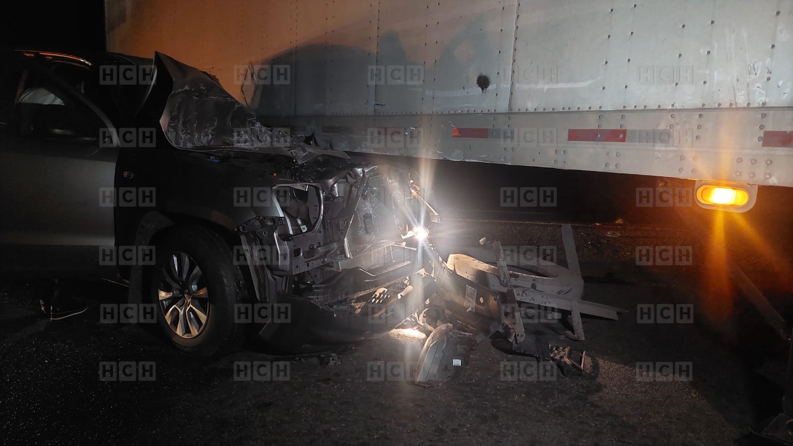 La parte frontal del vehículo quedó incrustada bajo el contenedor de la rastra y pese al fuerte impacto, el conductor logró salir ileso.