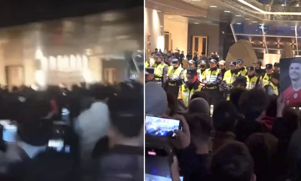 Los videos reflejados en redes sociales muestran un conjunto de simpatizantes realizando una vigilia en torno al hotel donde se hospeda el plantel desde su llegada al territorio. Más de un centenar de personas se agolparon en las puertas del establecimiento para intentar, al menos, llevarse algún autógrafo o foto con su ídolo. Un empleado quedó arrinconado por ellos, mientras buscaba apaciguar los ánimos sin éxito. La tensa calma fue escalando con el paso de los minutos hasta el punto de que la Policía limitó el sector del reclamo, aunque no los pudieron contener cuando ingresaron al hall central.