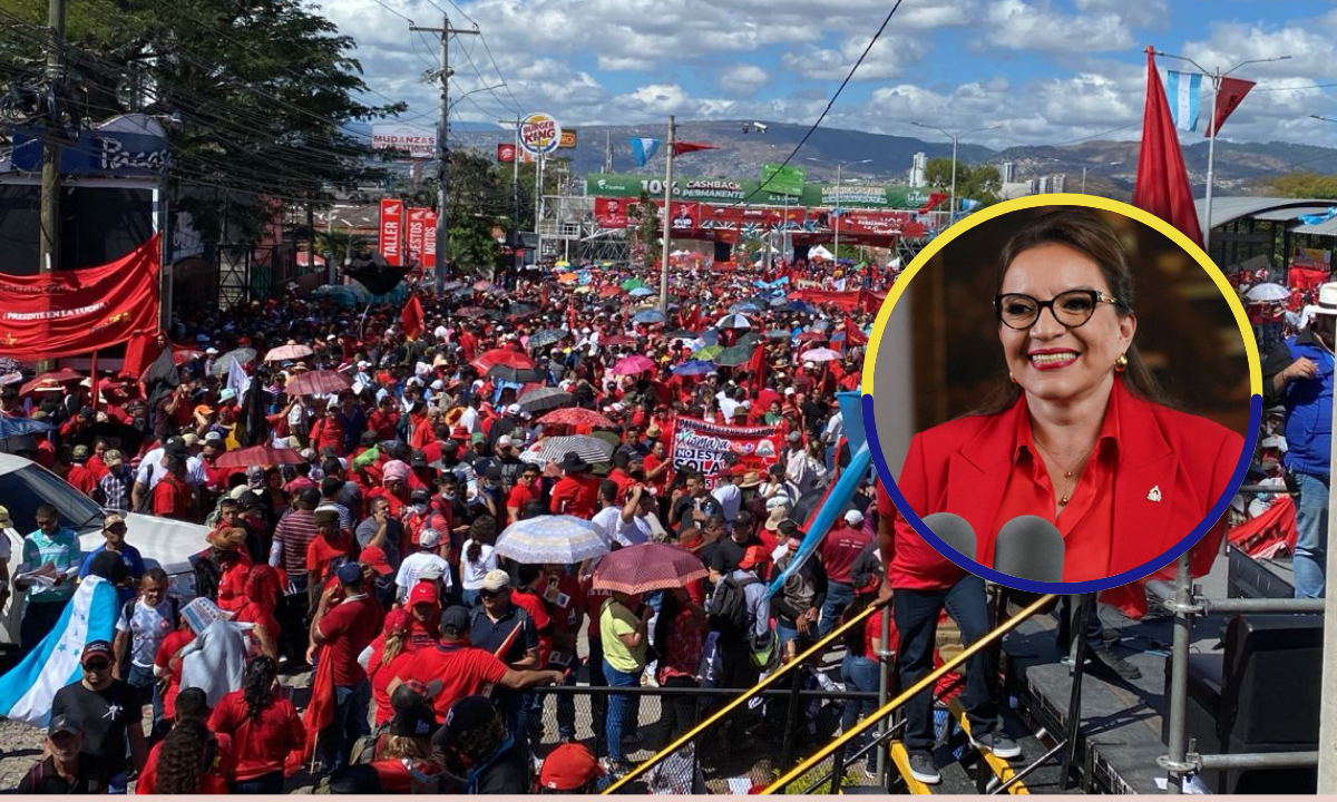 Cientos de hondureños y militantes del Partido Libertad y Refundación (Libre) celebran el segundo aniversario de la llegada de Xiomara Castro al poder.