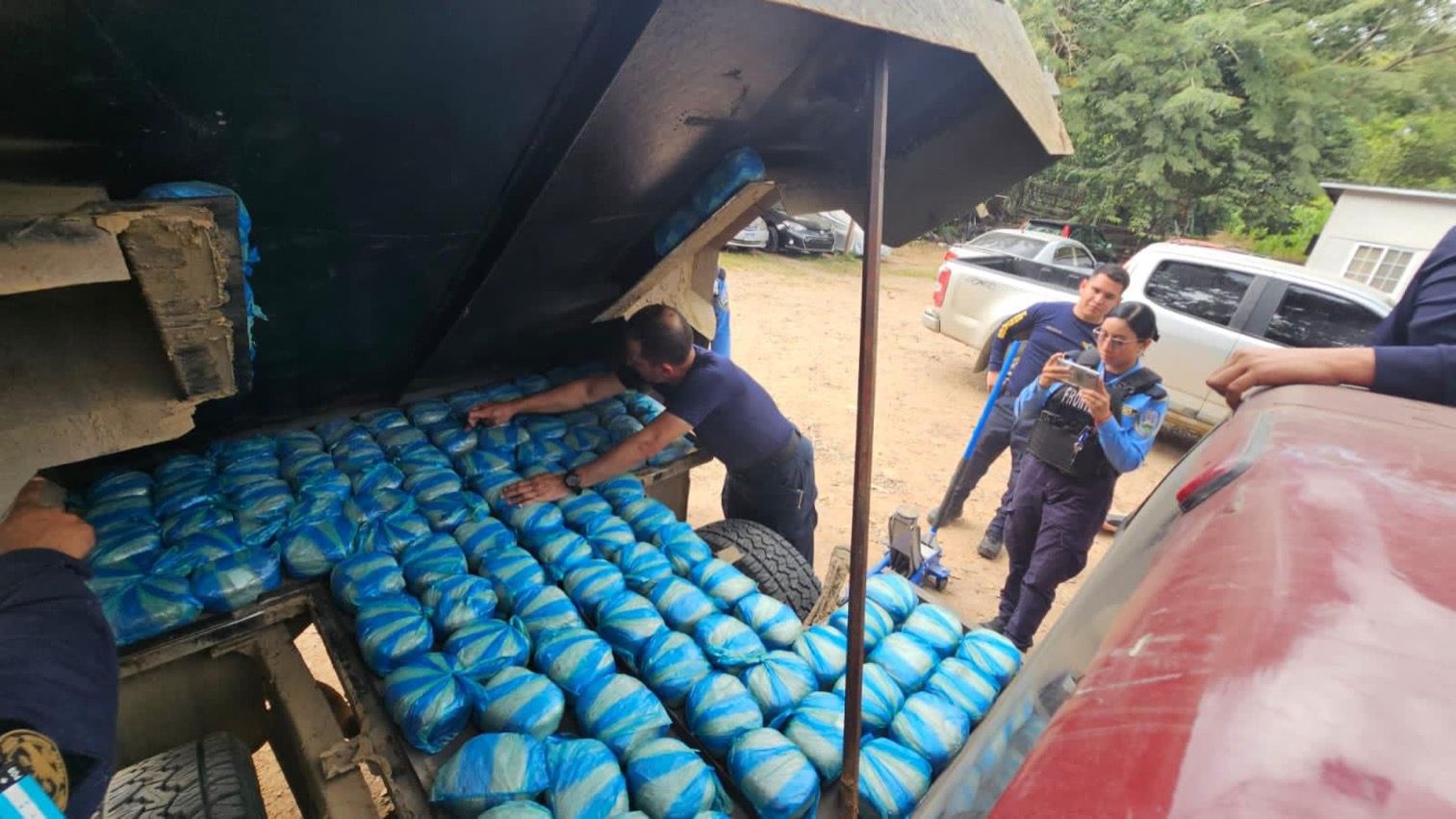 Detienen a un sujeto que transportaba 117 paquetes de supuesta marihuana, con un peso aproximado de 260 libras, ocultos en el interior del vehículo en Ceibita, Santa Bárbara.