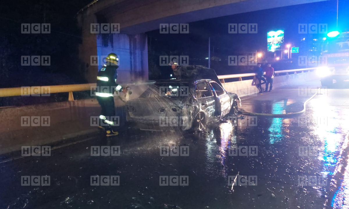 Un vehículo que circulaba por el puente a desnivel que conduce a Valle de Ángeles tomó fuego y quedó completamente calcinado.
