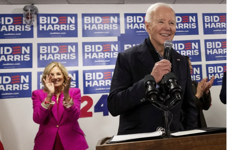 Según las proyecciones de varios medios como The New York Times, The Washington Post y CNN, Biden obtuvo más del 90 % de los votos, frente a menos del 10 % de sus dos únicos rivales en la papeleta: el congresista Dean Phillips y la escritora Marianne Williamson, ambos con escasas opciones de éxito.