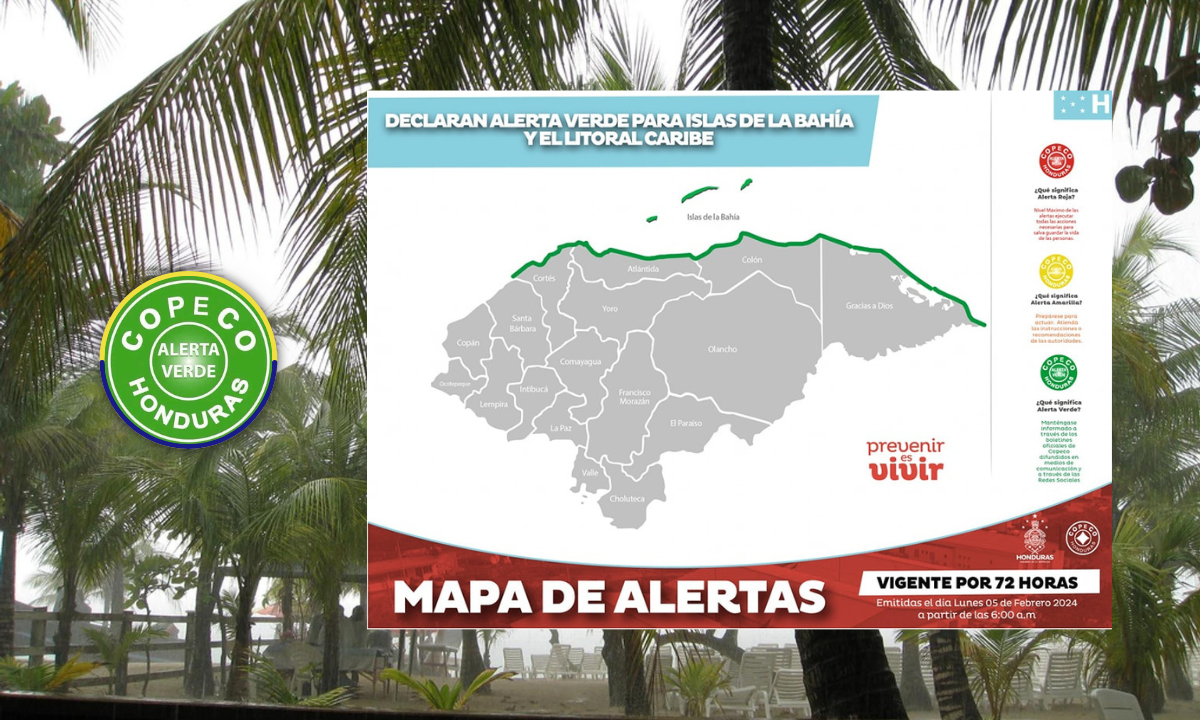 Por Frente Frío y alto oleaje decretan Alerta Verde para los departamentos de Islas de La Bahía y el litoral Caribe desde el departamento de Cortés hasta Gracias a Dios.