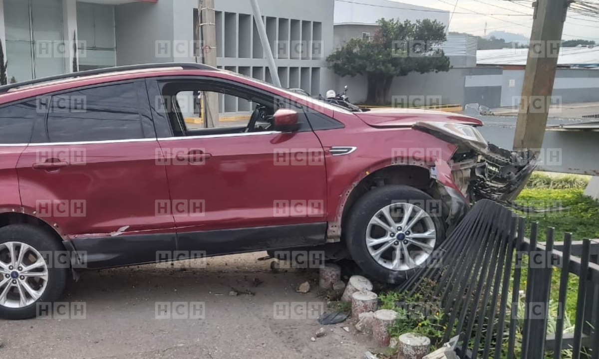 El conductor de un vehículo tipo camioneta impactó contra los tubos de contención y poste del tendido eléctrico de una empresa ubicada en la colonia El Prado de la capital.