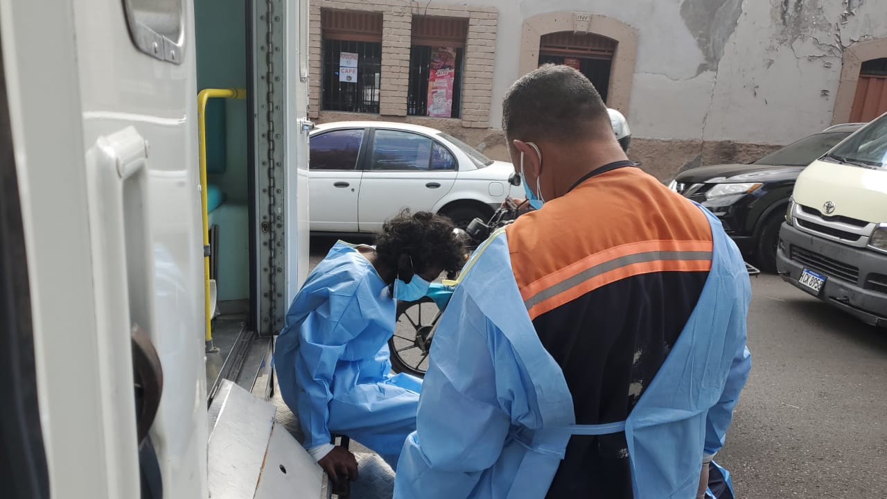 Una ambulancia del 911 se hizo presente en el lugar donde paramédicos realizaron su labor para ayudar al compatriota que se encontraba afectado por una grave dolencia, según diagnostico el indigente presentaba un grave estado de deshidratación, problemas estomacales e intestinales.
