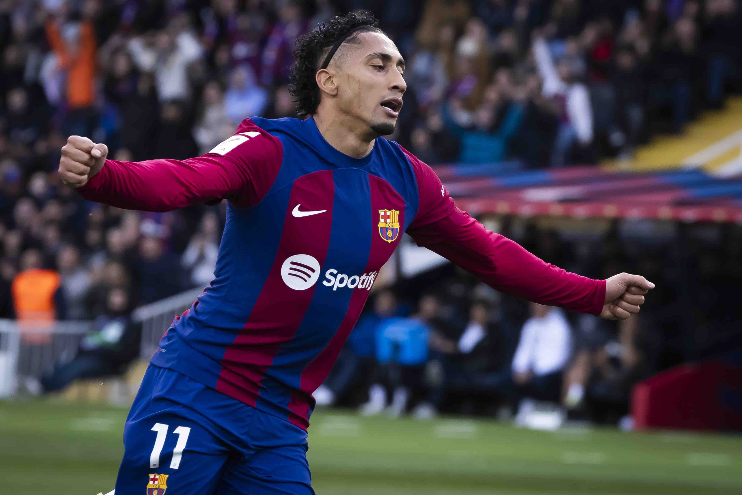 Los visitantes tuvieron la primera ocasión del partido con un tiro desde la frontal de Greenwood, que le robó la cartera a Frenkie de Jong antes de poner a prueba a Ter Stegen a los 6 minutos. El Barça replicaría en la siguiente jugado con un remate de espuela de Raphinha que se fue por encima del larguero. Y tan solo tres minutos después llegó el primer gol culé tras un gran balón al espacio de Koundé para la carrera de Raphinha que definió al palo largo ante la salida de Soria.