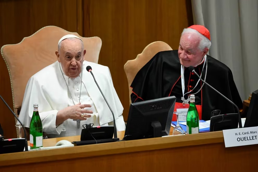 Francisco, todavía cansado por la gripe que lleva padeciendo desde hace días, dirigió algunas palabras de saludo, pero luego dejó leer el discurso preparado a monseñor Ciampanelli.