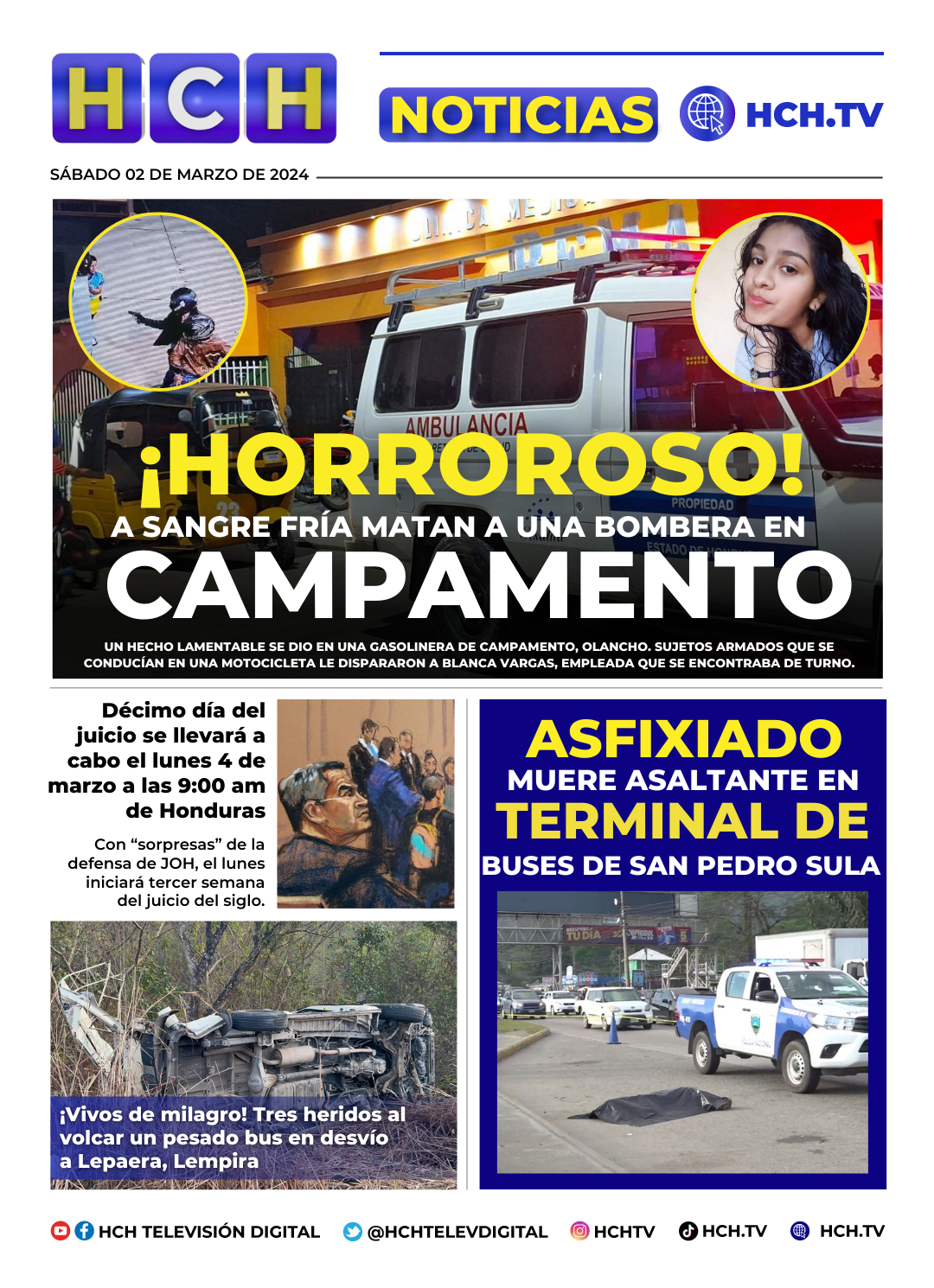 © 2025 - HCH Televisión Digital - Noticias de Honduras y el Mundo. Anillo Periférico, Complejo Empresarial Tegucigalpa, Honduras, C.A. Tel: (504) 2235-3245 / 2235-3246 / 2235-4875 / 2235-4876 LLÁMENOS GRATIS DESDE EE.UU: 3052801682 y 3052801735 © Copyright 2025 - HCH Televisión Digital. Todos nuestros contenidos están protegidos con derechos de autor.