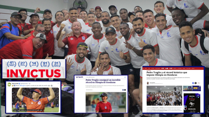 La gesta del equipo más ganador del fútbol hondureño la da la vuelta al mundo. Los principales medios deportivos del mundo destacan el récord logrado por el Club Deportivo Olimpia al superar la marca de 41 partidos invicto en la Liga Nacional, todo al mando del técnico argentino Pedro Antonio Troglio.