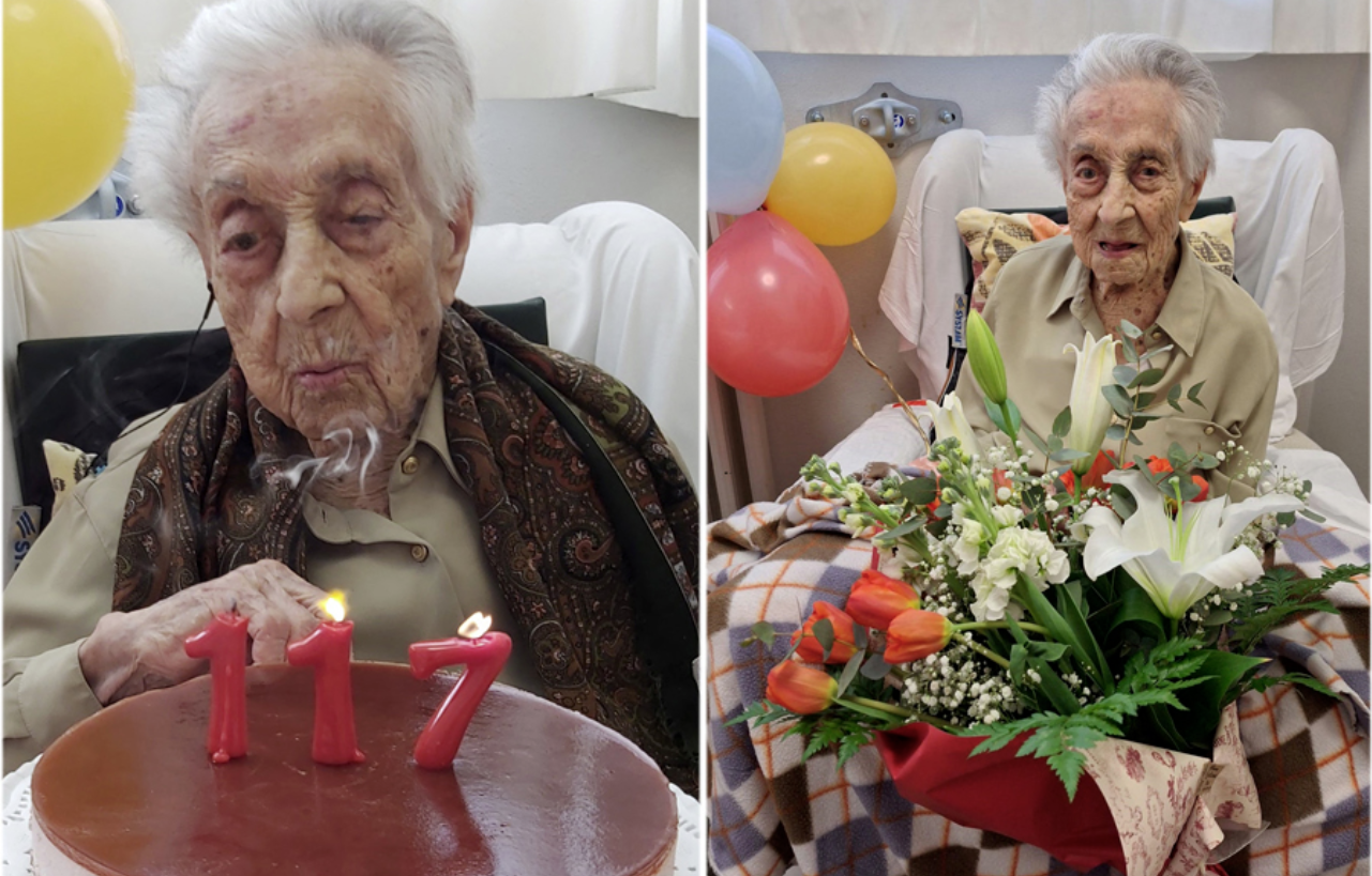 Maria Branyas, la superanciana que está considerada como la persona más vieja del mundo, ha cumplido este lunes 117 años de edad en su residencia de Olot (Girona). Branyas vive en la residencia Santa Maria del Tura de Olot (Girona) y desde hace años ya no atiende a medios de comunicación, pero su familia lanza mensajes a través de un perfil de la red X.