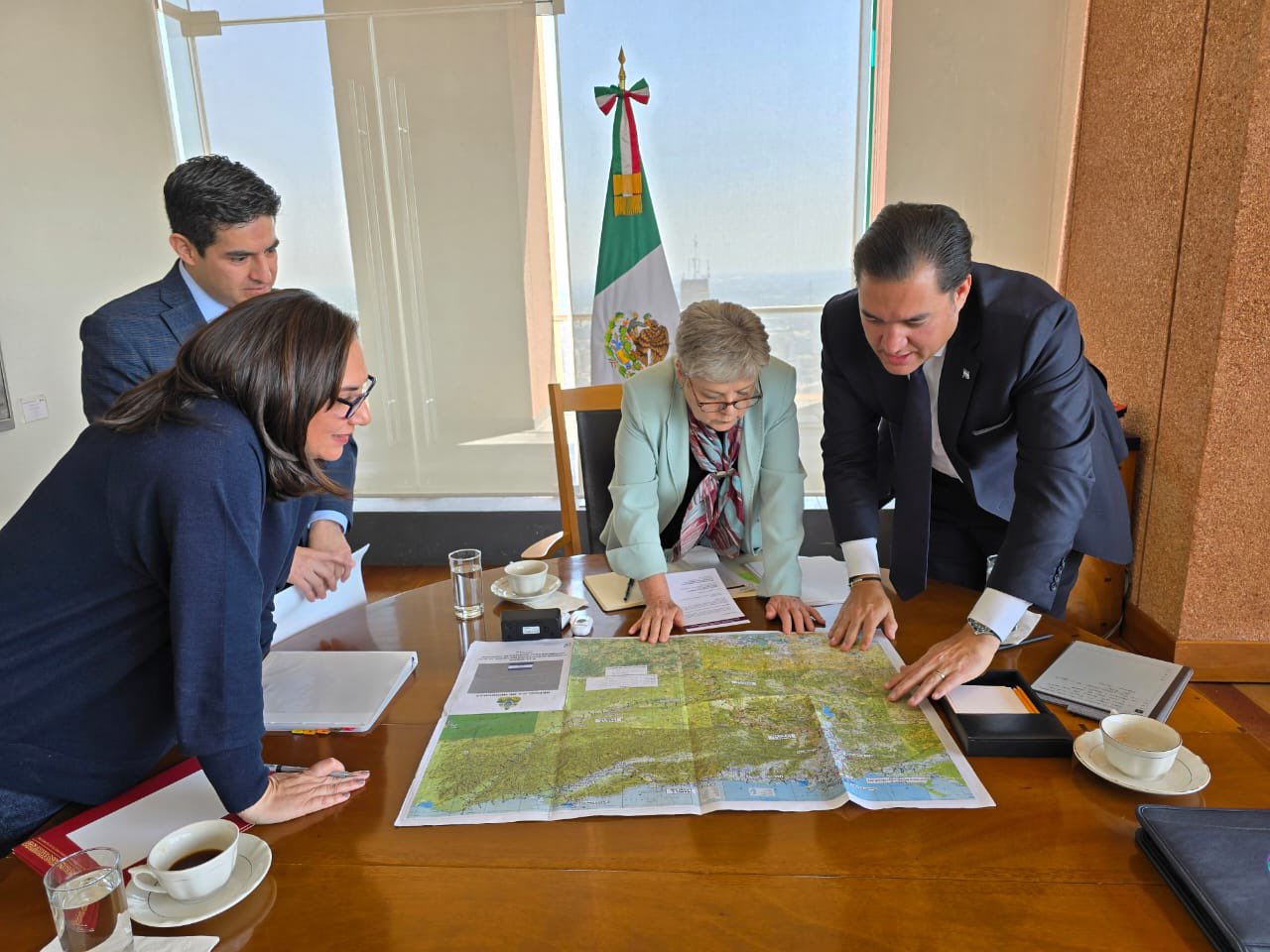 Hector Manuel Zelaya Castro, secretario de la presidencia posteo en sus redes sociales la reunión que sostuvo con expertos en construcción de corredores interoceánicos y ferrocarriles, quienes proviene de México.