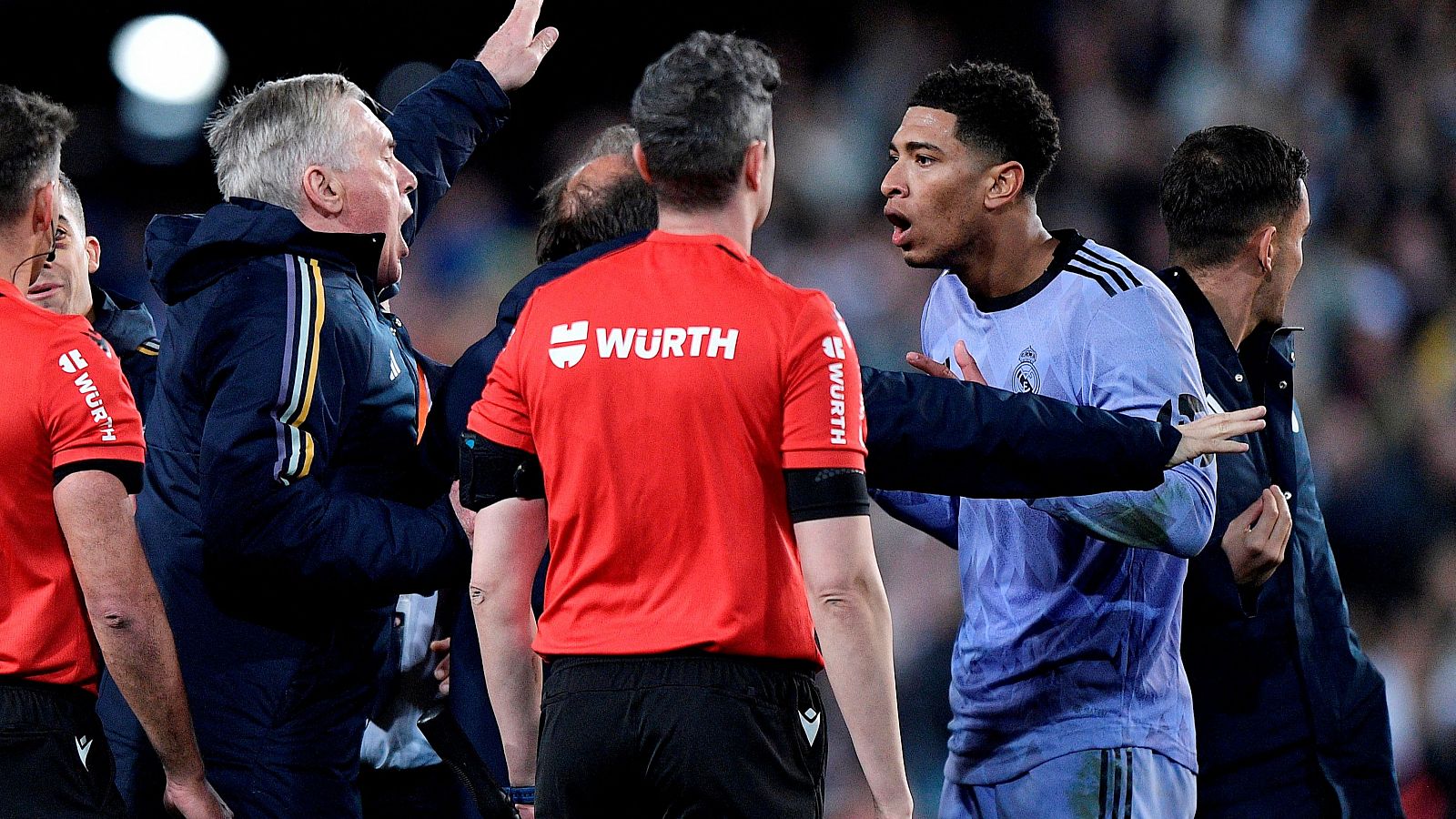 El jugador del Real Madrid fue expulsado al final del partido ante el Valencia tras la polémica última jugada donde Gil Manzano señaló el final del encuentro en el momento en que Brahim centraba al área un balón que Bellingham remataba de cabeza y conseguía batir a Mamardashvili. Un gol que habría supuesto la victoria para los de Carlo Ancelotti, pero que, finalmente, se quedó en empate al considerar que estaba fuera del tiempo reglamentario.