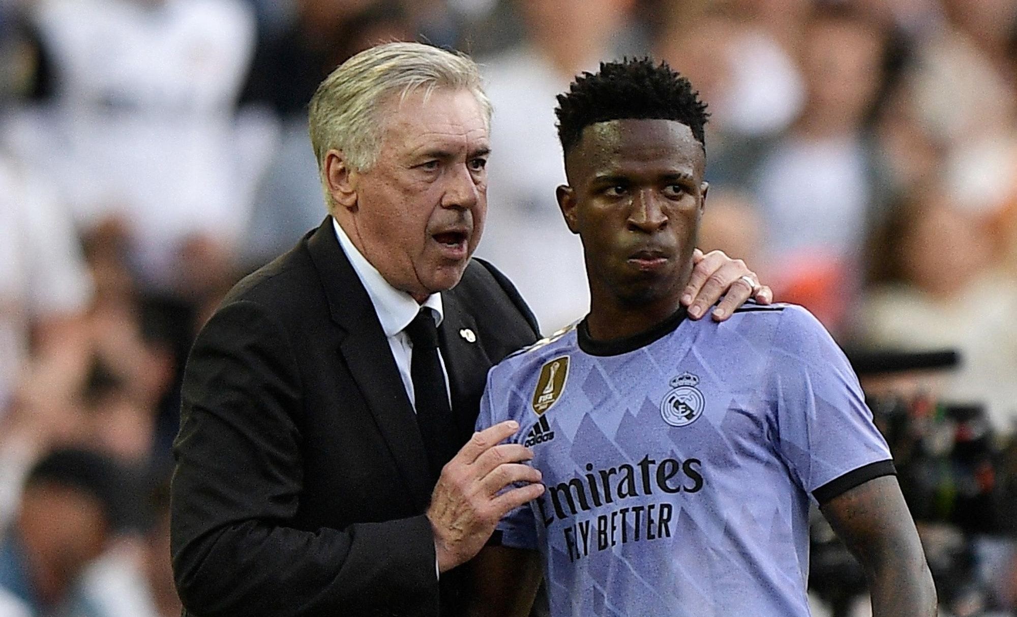 «Bueno, tema Vinicius…», resopló Carlo Ancelotti con la primera pregunta sobre la actitud del futbolista brasileño… y las conversaciones que tiene con él para tratar de corregir sus reacciones en los lances del juego en los que acaba siendo señalado después de los partidos (ejemplo: empujón a Orbán en Champions).