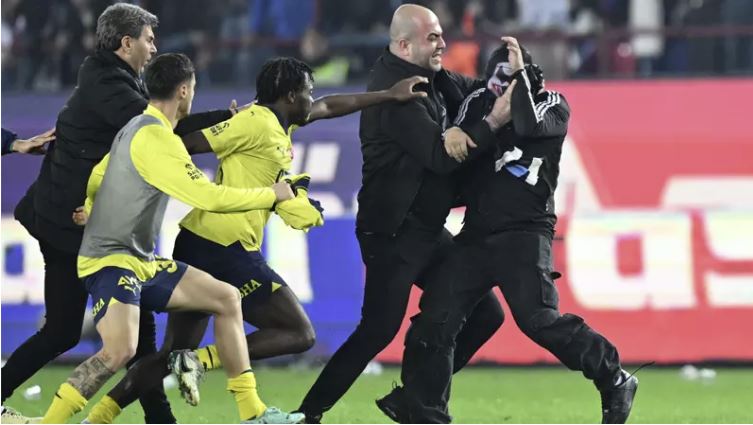 Cuando los jugadores del Fenerbahçe estaban celebrando el triunfo en el centro del campo, los aficionados del Trabzonspor decidieron pasar por encima de toda la seguridad e ir a por ellos generando una batalla campal brutal. Algunos lograron entrar a vestuarios pero otros no tuvieron más remedio que defenderse.