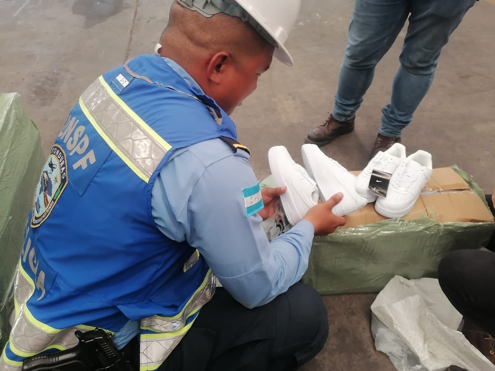 Mediante labores de inspección, funcionarios de la Dirección Nacional de Servicios Policiales Fronterizos (DNSPF), lograron el decomiso de un contenedor que transportaba aproximadamente 20 mil 64 pares de tenis de diferente marca, con un valor aproximado de 30 millones de lempiras.