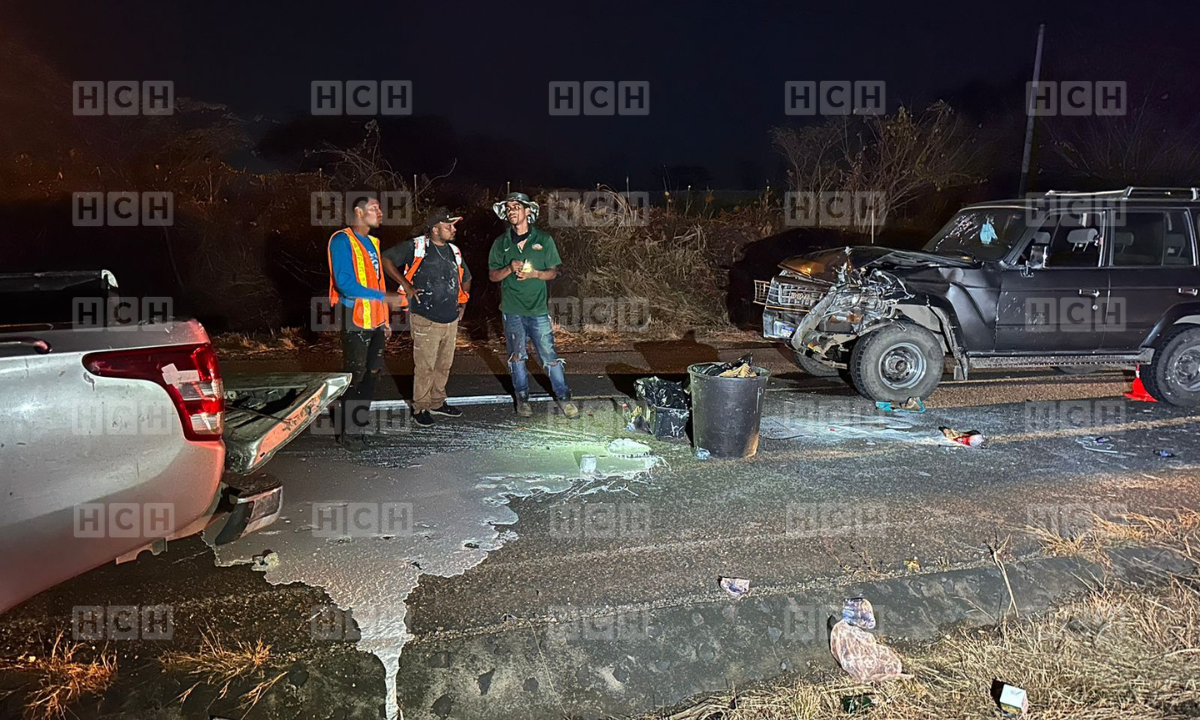 En la carretera que conduce de La Barca a Santa Rita Yoro, se produjo un fuerte accidente vial entre dos vehículos. Un carro tipo turismo chocó contra un pick up en el que iban trabajadores que se encargan de señalizar las vías.