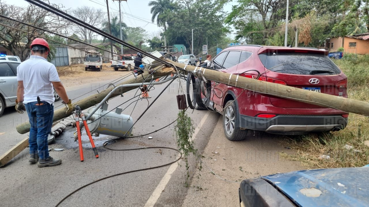 Fuerte accidente vial deja sin energía eléctrica la ciudad de Catacamas.