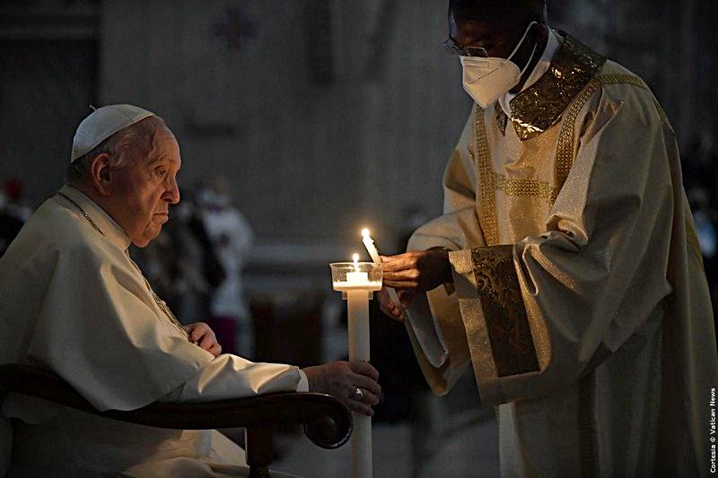 El papa Francisco presidió este sábado la misa de la Vigilia Pascual en la basílica de San Pedro, después de renunciar al Vía Crucis del Coliseo para cuidar su salud, y en la homilía pidió «que se aleje la desesperación» para «los pueblos destruidos por el mal y golpeados por la injusticia».