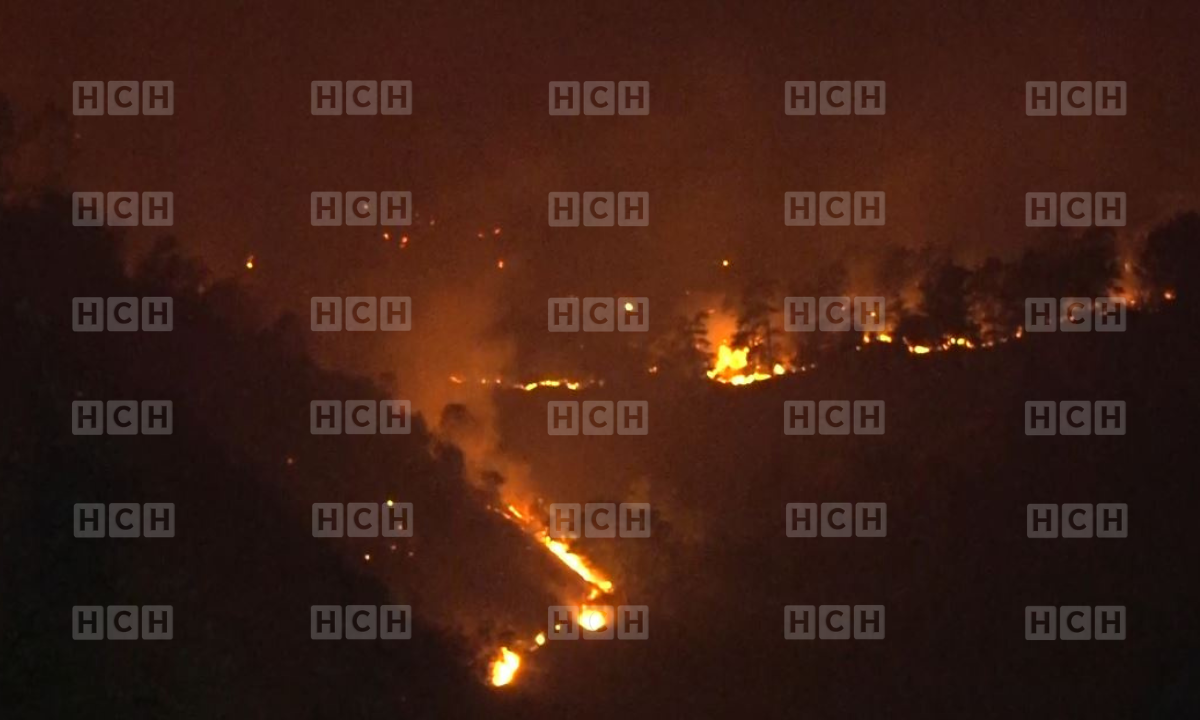 Las montañas de Cofradía, Cortés arden esta noche. El fuego se extiende mientras el viento aviva las llamas.