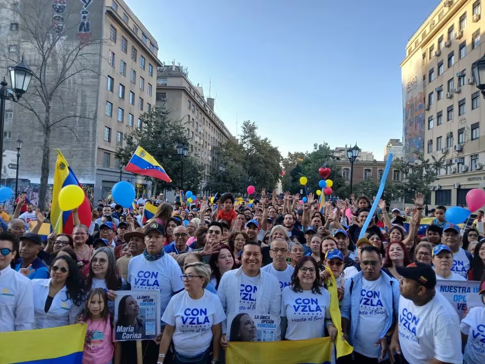 Cientos de venezolanos participaron este sábado en manifestaciones que se llevaron a cabo en más de una docena de países, donde los migrantes corearon consignas a favor de “elecciones libres” en su nación y en respaldo a la líder opositora María Corina Machado, que convocó estas actividades en unas 50 ciudades del mundo.