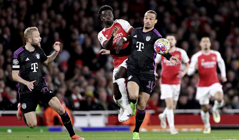 Tan sólo cinco minutos después de la apertura del marcador, llegó la igualdad. Un error en la salida del Arsenal le permitió al Bayern recuperar la pelota y en tres toques dejar a Gnabry cara a cara con David Raya Martin. El delantero de la selección alemana no falló y definió al gol tras una asistencia de León Goretzka. A la media hora de juego, luego de una salida de Neuer, Leroy Sané armó una gran jugada individual partiendo desde la mitad de cancha y fue derribado dentro del área por William Saliba. El árbitro Glenn Nyberg no dudó en sancionar el penal, que cambió por gol Harry Kane.