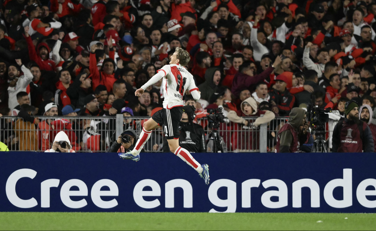 Claudio Echeverri, con una bomba en el primer tiempo, y Facundo Colidio sobre el final del partido, le dieron el triunfo por 2 a 0 al Millonario, que lidera el Grupo H con seis unidades, seguido por Libertad de Paraguay y el Bolso con tres, mientras que cierra la zona sin puntos Deportivo Táchira de Venezuela.