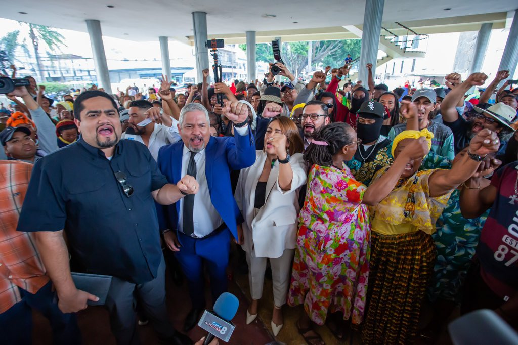 La comisión se trasladó a los bajos del Congreso Nacional donde permanece la comunidad garífuna en conmemorando los 227 aniversario desde su llegada a Honduras.