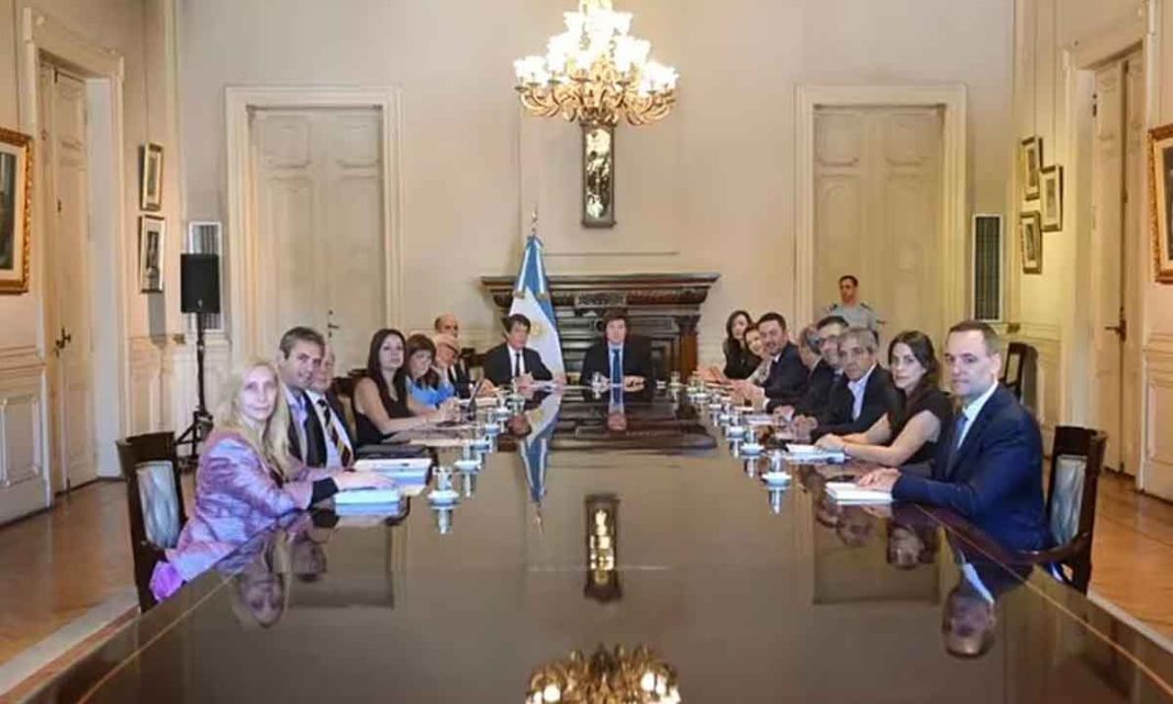 En el lugar ya lo estaban esperando el jefe de Gabinete, Nicolás Posse; el asesor político, Santiago Caputo; el vocero Manuel Adorni, y los ministros de Economía, Luis Caputo; del Interior, Guillermo Francos; de Seguridad, Patricia Bullrich, y de Salud, Mario Russo. Más tarde arribó la vicepresidenta Victoria Villarruel. y el secretario de Legal y Técnica, Javier Herrera Bravo, entre otros.