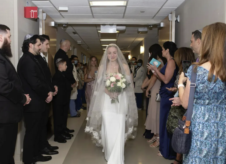 Una mujer se casó en el hospital Memorial Sloan Kettering Cancer Center en Manhattan, Nueva York, junto a la cama de su papá moribundo.