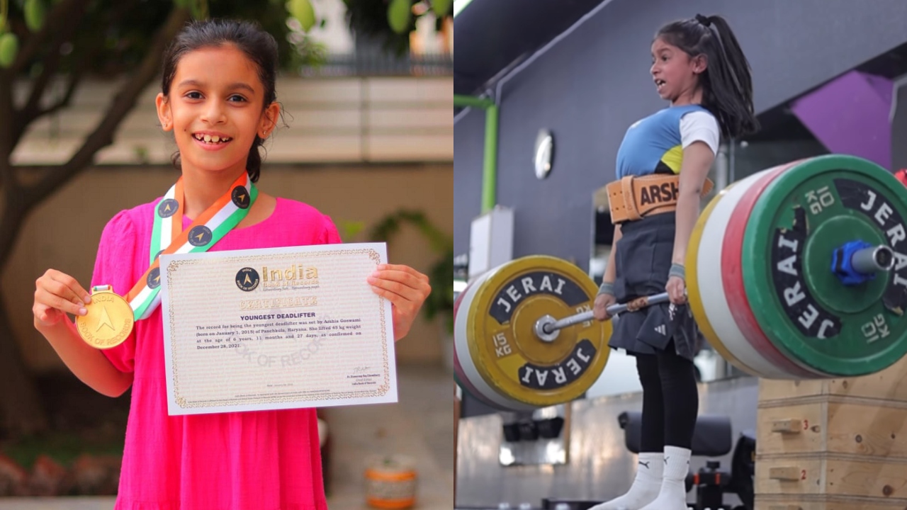 Arshia Goswami, India's 'youngest deadlifter' who can lift 75 kg (165 lbs) and is just 9 years old.
