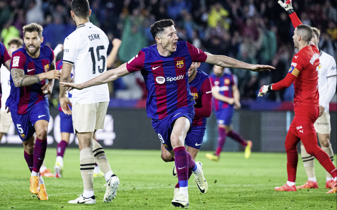 Toca asegurar la segunda plaza tras el anuncio de la continuidad de Xavi la próxima temporada y el Barcelona tuvo que currárselo pero acabó sumando los primeros tres puntos de este tramo final de Liga. Después de un primer tiempo que fue un festival de los errores, especialmente de los dos porteros, y en el que los goles de Hugo Duro y Pepelu de penalti remontaron el inicial de Fermín, el conjunto barcelonista acabó plasmando el triunfo gracias a tres goles de Lewandowski. Los dos primeros, a la salida de sendos saques de esquina ante un Valencia con diez por expulsión, justa, de Mamardashvilli. El tercero, de falta directa.