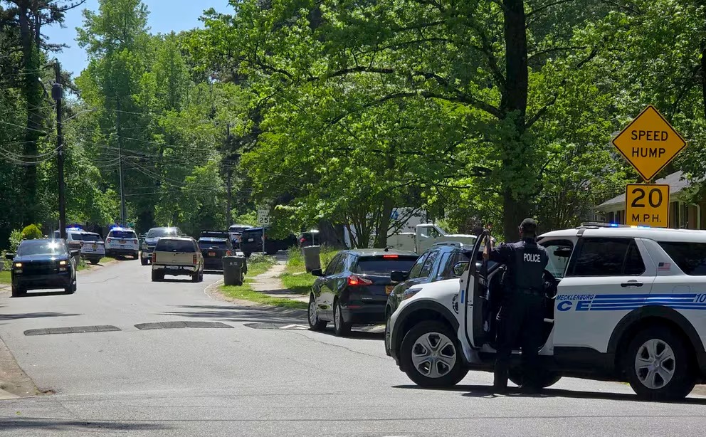 Los agentes fueron atacados por primera vez por el sospechoso buscado cuando se acercaban a la casa suburbana en Charlotte y lo mataron en el patio delantero, dijo el jefe de policía de Charlotte-Mecklenburg, Johnny Jennings.