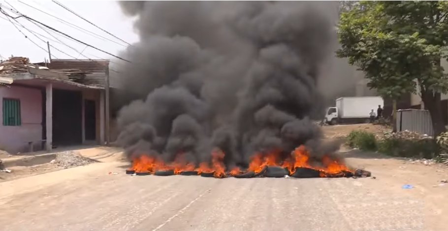 Conductores de mototaxis protestan con quema de llantas en la carretera que conduce hacia el sector del Lolo, en Comayagüela.