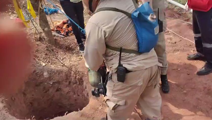 Cuerpo de Bomberos rescata el cadáver de dos hombres que cayeron a un pozo a inmediaciones de la estación de migrantes, en la entrada del municipio de Tatumbla, FM, al oriente de Honduras.